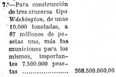 Extracto de la Gaceta de Madrid num. 194 de 1926 donde se estipula la construcción de los cruceros tipo Washington.