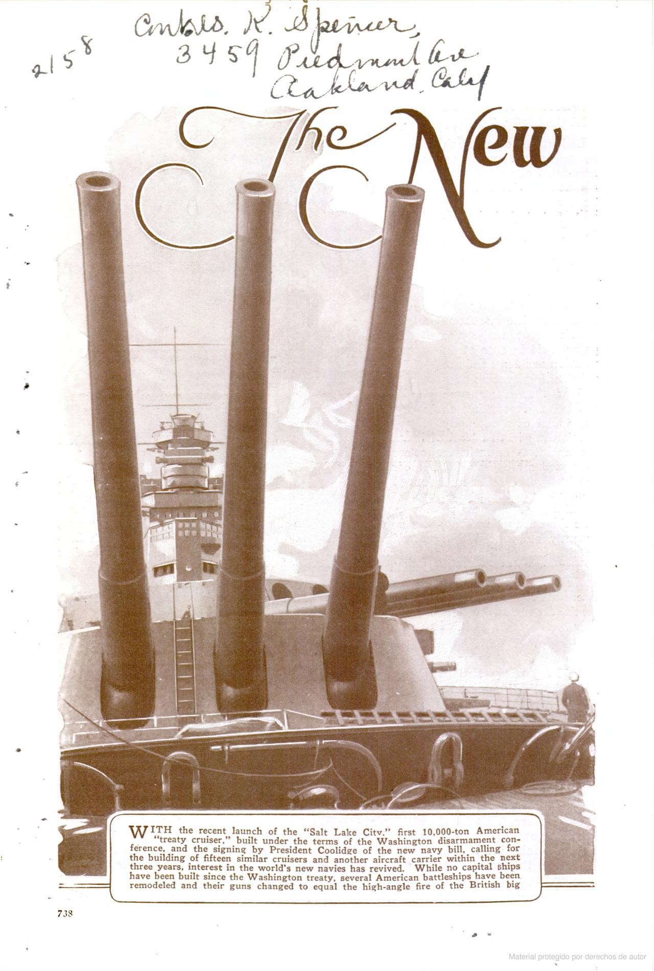 Portada del capítulo "New navies" de la revista estadounidense "Popular Mechanics" donde se muestran las limitaciones de los cruceros de guerra