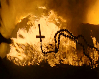 Una cosa es que Felipe, como ferviente católico, hubiese puesto su espada y su hacienda al servicio de Roma y otra, muy distinta, que considerase ser la persona a la que Dios le revelaba su voluntad y le daba a conocer sus designios. En la escena final de la secuencia, al llegar cerca del balcón se detiene perturbado por la luz que entra desde el exterior (recuso de Kapur para convencer al espectador de que es el señor de las tinieblas y por ello la luz del día le molesta) y deja que Isabel Clara Eugenia salga sola para ser aclamada por los gritos de una masa, una turba o populacho. Mientras que las muestras del pueblo inglés hacia su soberana son siempre comedidas, educadas, civilizadas, cercanas. El Escorial también sale mal parado en esta cinta. No se nos presenta como el edificio grandioso que es, remembranza del templo de Salomón, con una de las bibliotecas más impresionantes de Europa, construido con ricos materiales y decorado con creaciones de los mejores artistas de la época, llegando a ser considerado como una de las maravillas del mundo.